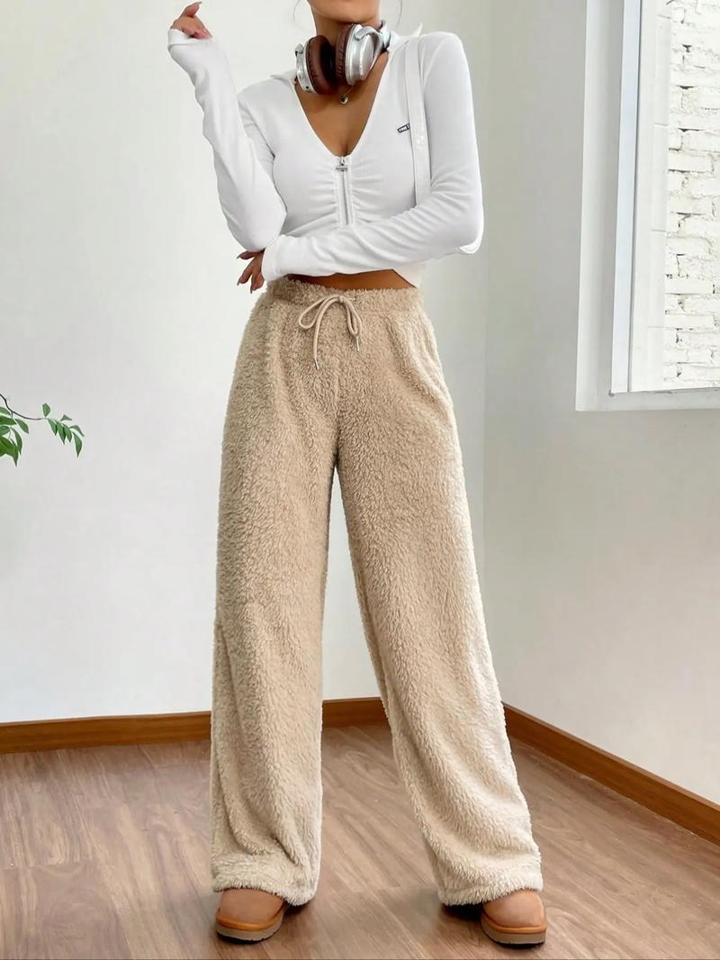 【Soft Fabric】: Made from plush material, these trousers provide a warm and inviting feel, perfect for cooler fall and winter days.
